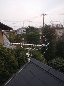 その後、青葉区荏田西の新築現場でUHFアンテナ工事。こちらは屋根上建てればブースターも必要なく(70db以上)大丈夫なのだがお客さんの意向でアンテナを目立たなくさせようとの事で
