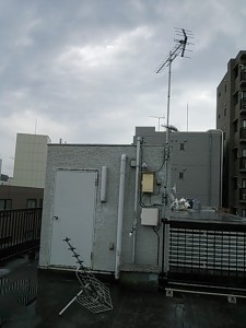 今日は、朝一で西区浅間町の4階建てのビルのアンテナ改修工事。