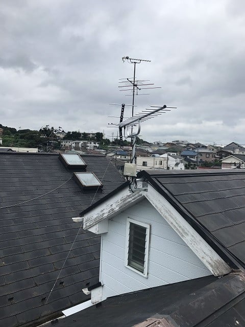 今日は朝一で、この間の台風で傾いたアンテナ補修で横浜市緑区鴨居にてUHFアンテナ工事。